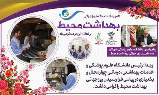 پیام تبریک رئیس دانشگاه به مناسبت فرارسیدن روز جهانی بهداشت محیط