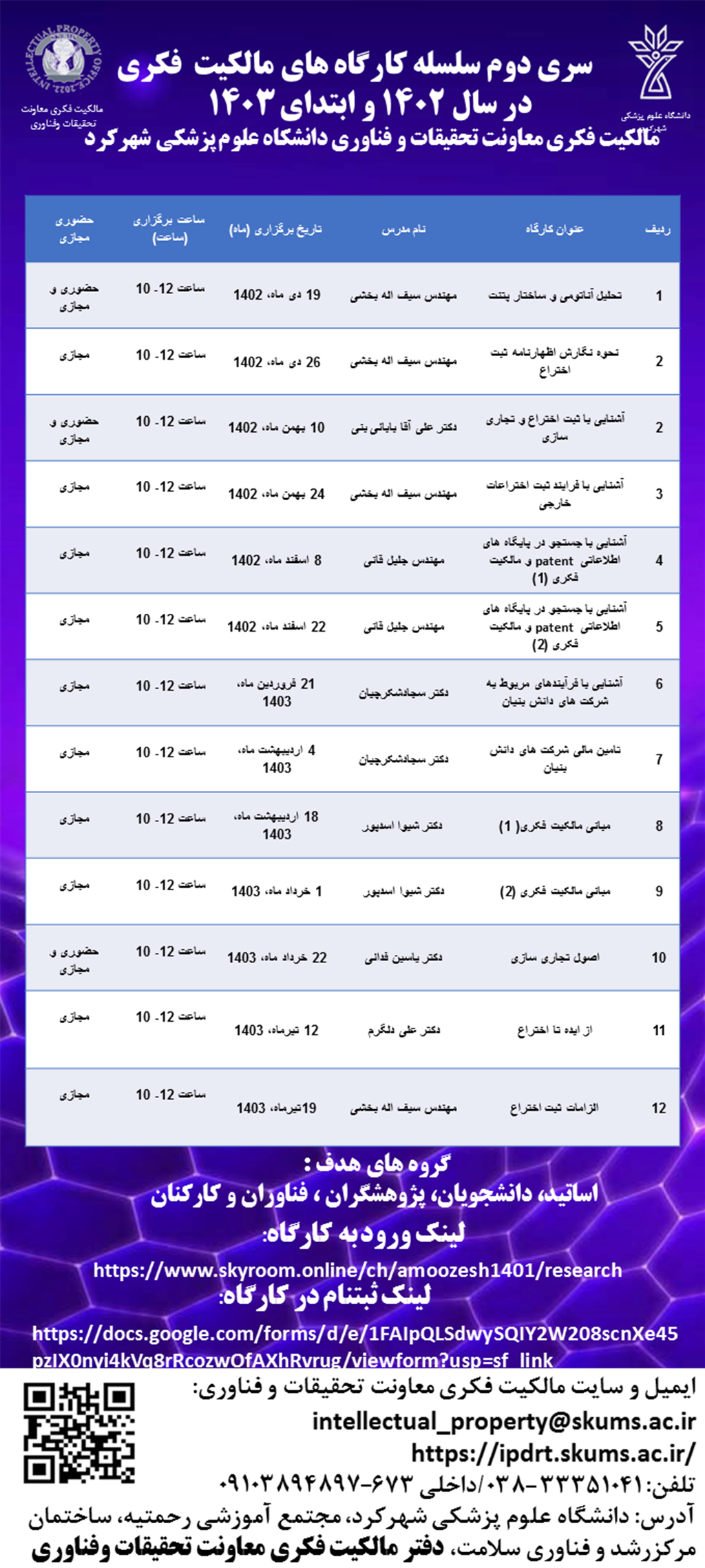 برگزاری سلسله کارگاه های مالکیت فکری: