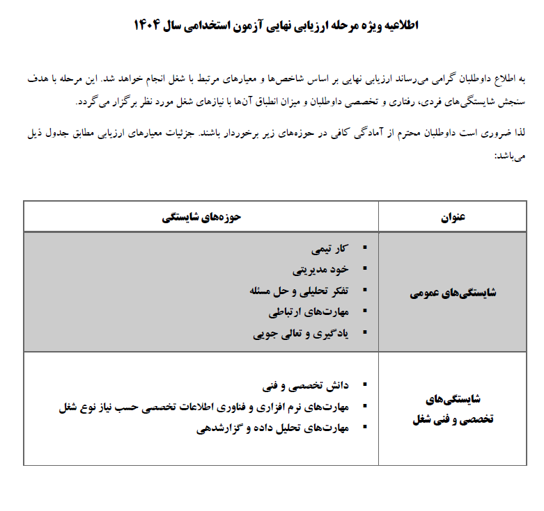 اطلاعیه شماره 13 آزمون استخدام پیمانی سال 1404