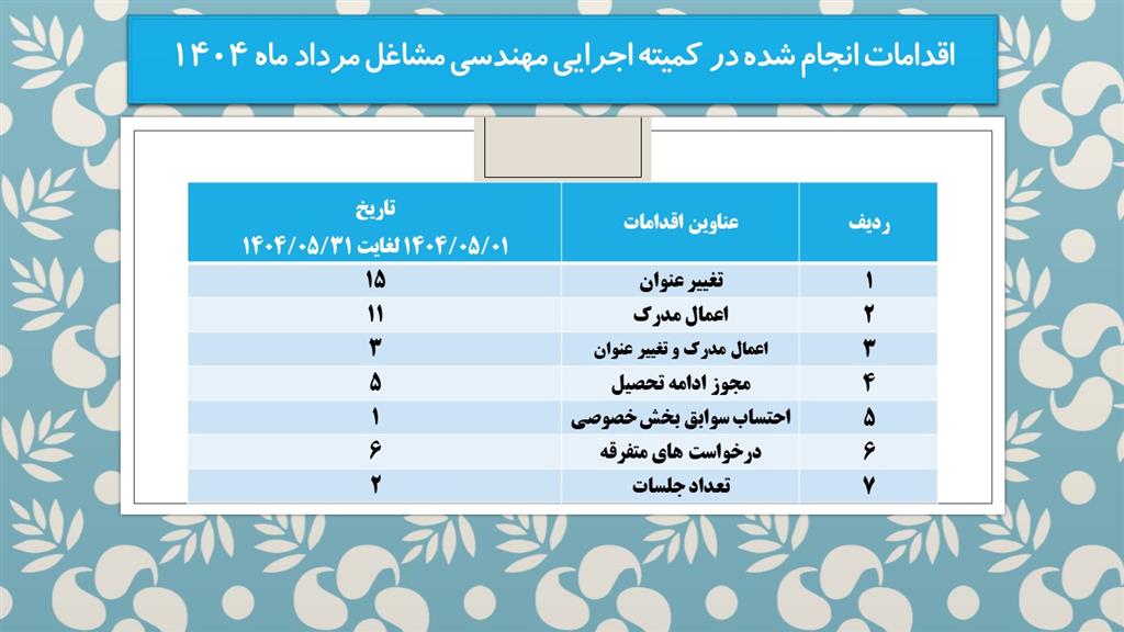 اقدامات انجام شده