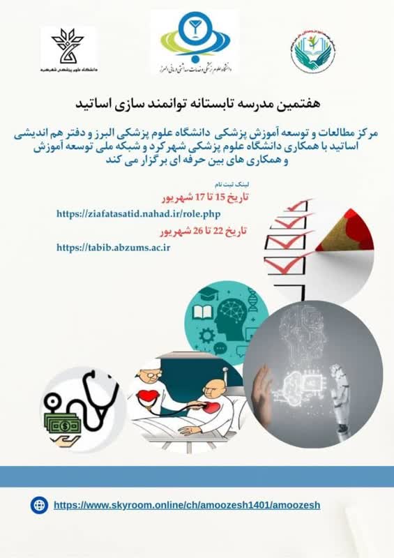 مرکز مطالعات و توسعه‌ی آموزش پزشکی دانشگاه علوم پزشکی البرز و دفتر هم اندیشی اساتید با همکاری دانشگاه علوم پزشکی شهرکرد و شبکه‌ی ملی توسعه آموزش و همکاری‌های بین حرفه‌ای برگزار می‌کند.