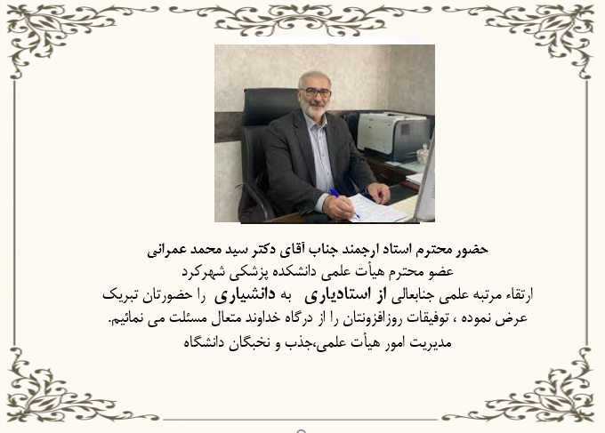 تبریک ارتقا جناب آقای دکتر سید محمد عمرانی