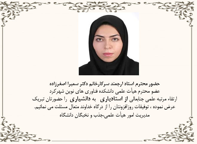 تبریک ارتقا خانم دکتر سمیرا اصغرزاده