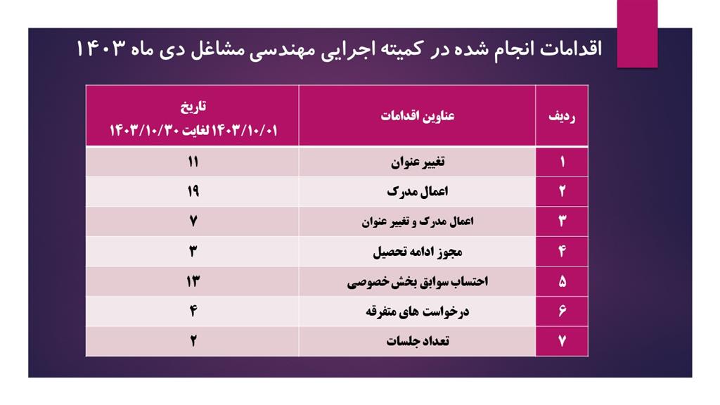 اقدامات انجام شده